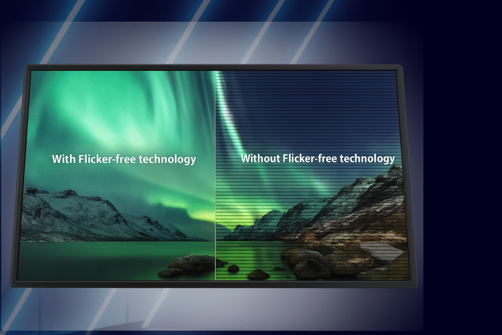 Features flicker-free technology to reduce eye strain and provide a more comfortable viewing experience.